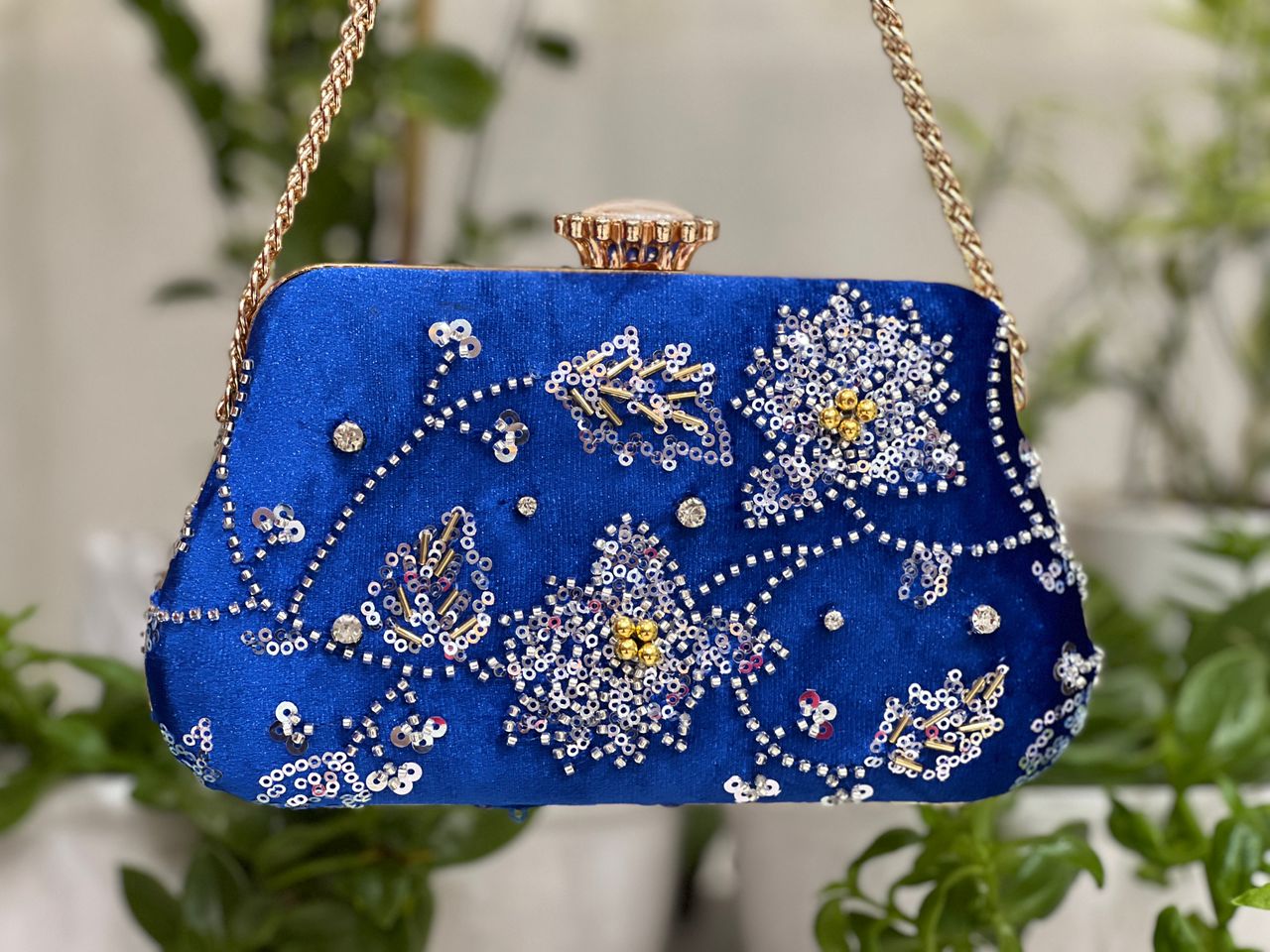 کیف مجلسی کلاچ جواهر دوزی و سنگ دوزی ، تهیه شده از بهترین متریال به همراه زنجیر یک متری رنگ ثابت ، مناسب خاص پسندان