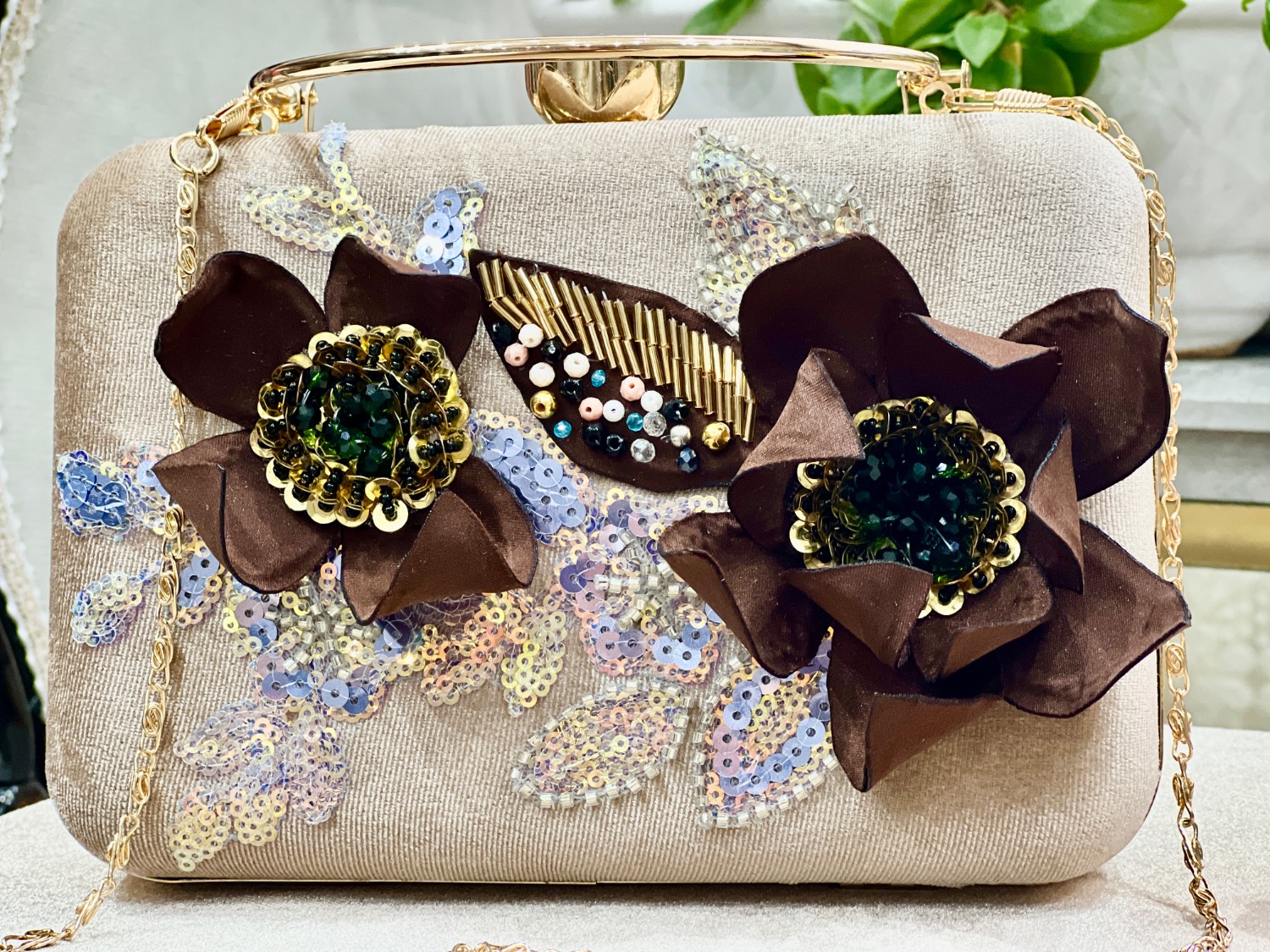 جنس بدنه: مخمل با پولک دوزی و گل برجسته